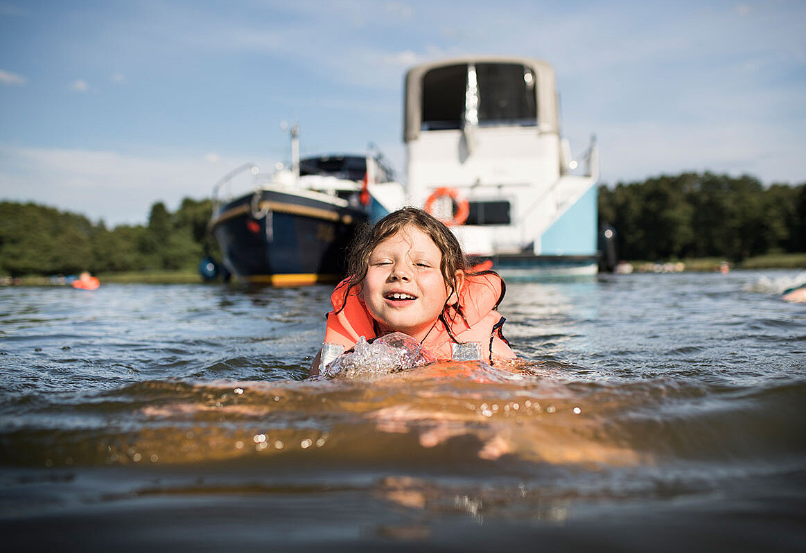 Ein Kind springt von einer unserer Yachten aus ins Wasser