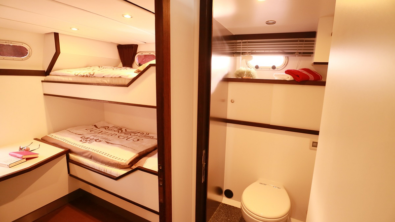 Somit wäre bei dem entspannten Urlaubsfeeling auch der Spaßfaktor garantiert und es kann keine Langeweile aufkommen. Die Jetten lässt auch für Paare keine Wünsche offen - die großräumige Küche und der Salon sind hell & modern ausgestattet.