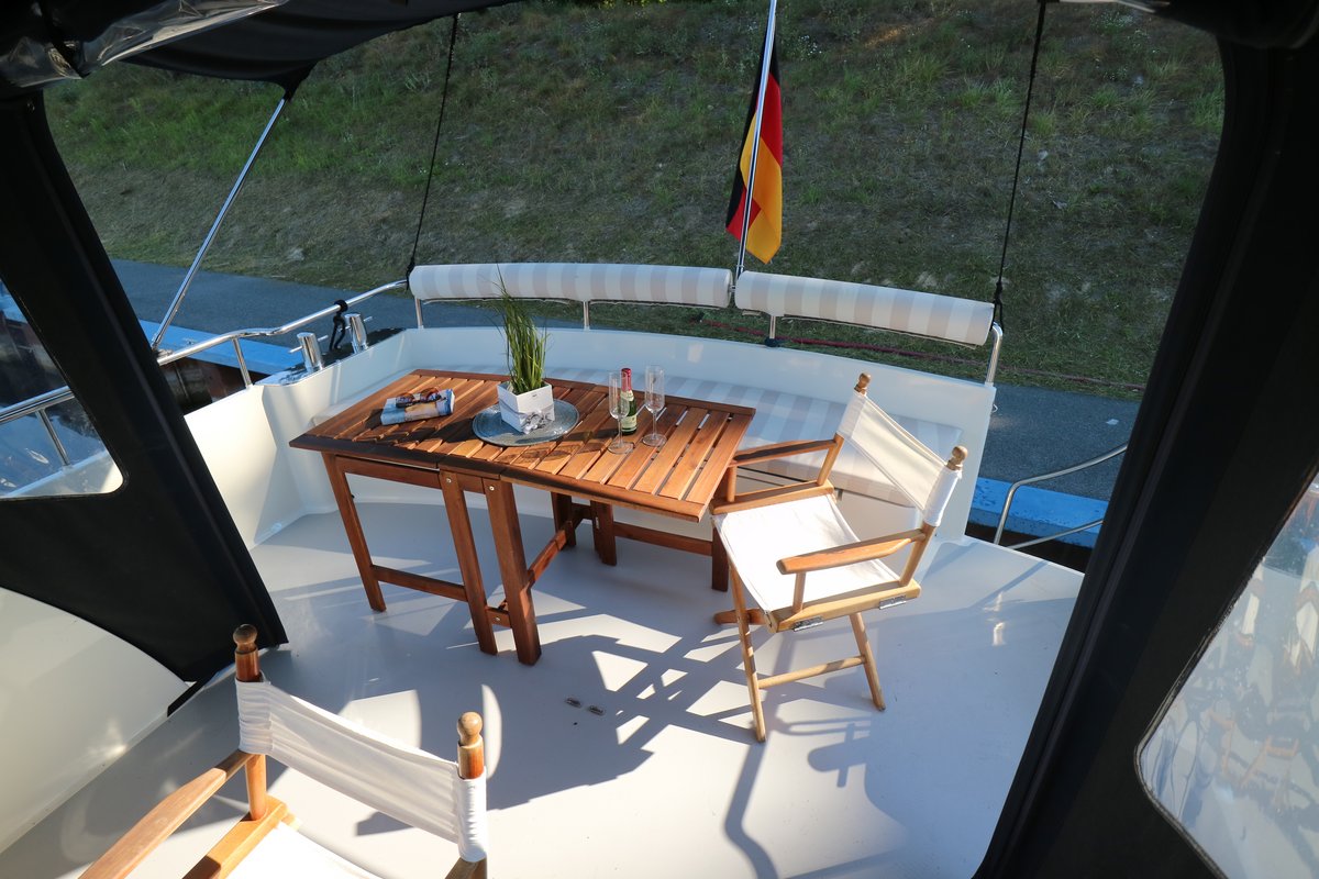 Diese Yacht bietet Ihnen alles für entspannte Tage auf dem Wasser. Das großzügige Achterdeck mit Sitzecke, Deckstühlen und Sonnenschutz lädt zum Verweilen ein. Die Badeplattform mit Heckdusche sorgt für Erfrischung zwischendurch.