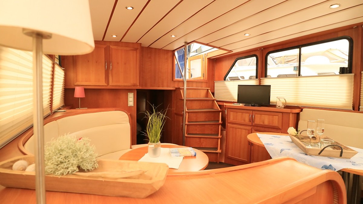 Auf dieser Yacht wird der Urlaub zelebriert. Zwei französische Betten und eine dritte Kabine mit Doppelbett ermöglichen auch der großen Familie den Spaß auf dem Wasser. Die elegante Ausstattung und eine Inneneinrichtung mit kleinen Finessen wissen zu überzeugen. Genießen Sie Ihre wertvollen gemeinsamen Tage auf der Müritz. Ahoi!
