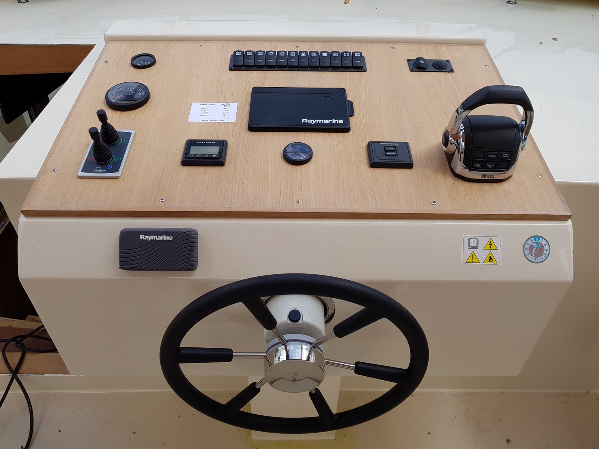 Die Cappuccino M-Retro 120 ist ein Schwesterschiff der Platinum und ist eine vom Design her attraktive Erscheinung. Der Rumpf der Verdrängeryacht wird ebenfalls in Knickspantbauweise gefertigt. Charakteristisch für alle M-Retro-Yachten ist eine komfortable Treppe vom Achterdeck zur Badeplattform und eine integrierte Sitzbank auf dem Achterdeck.