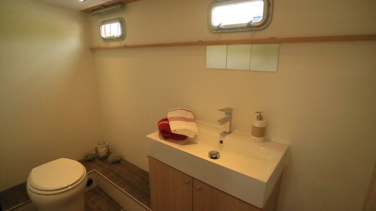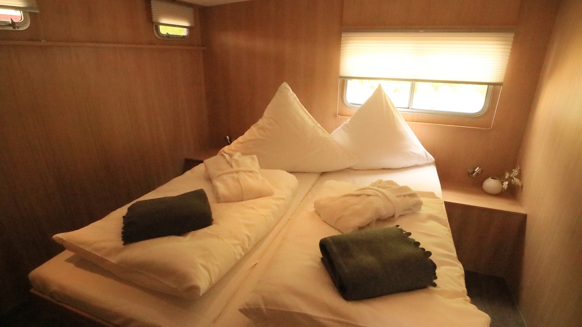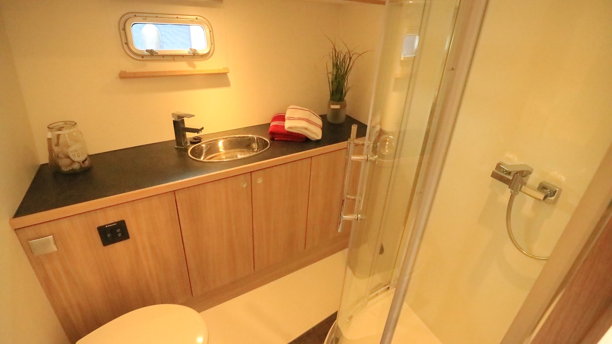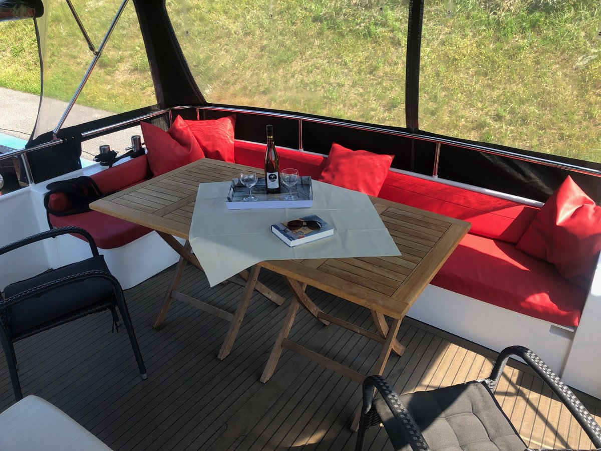Mit dieser Yacht setzen Sie ein Zeichen auf der Müritz! Denn diese sticht nicht nur durch die ungewöhnliche Färbung heraus, sondern auch durch zwei echte Sonnenplätze auf dem Vorderdeck. Helle Hölzer im Innenbereich verleihen dem großen Salon mit integrierter Küche ein „Hier-bin-ich-Zuhause“-Gefühl. Das betont auch der durchdachte Grundriss, der sechs Personen einen Idealurlaub auf dem Wasser ermöglicht.
