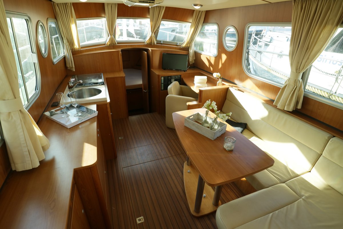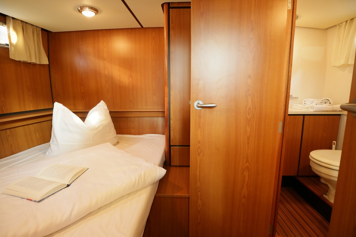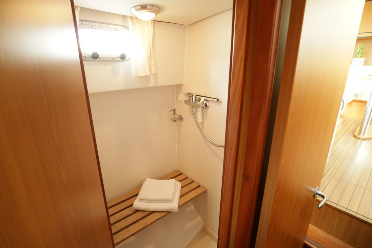Unsere Laureen bietet sich besonders für Pärchen aber auch als echtes Familiengefährt an. Viel Platz um es sich zu zweit gemütlich zu machen. Auch ihre Kinder werden die lange Badeplattform als private See-Sprung-Schanze lieben. Sie lassen sich sicher auch von den edlen Hölzern in den beiden gleichwertigen Schlafkabinen beeindrucken. Mit der Klimaanlage an Bord können Sie heiße Spielduelle am Abend im schönen hellen Salon herunterkühlen.