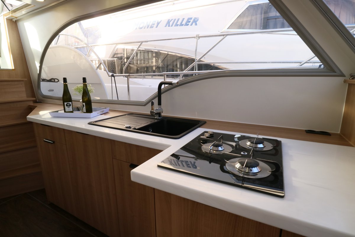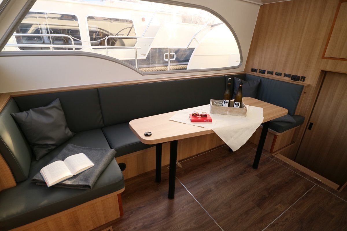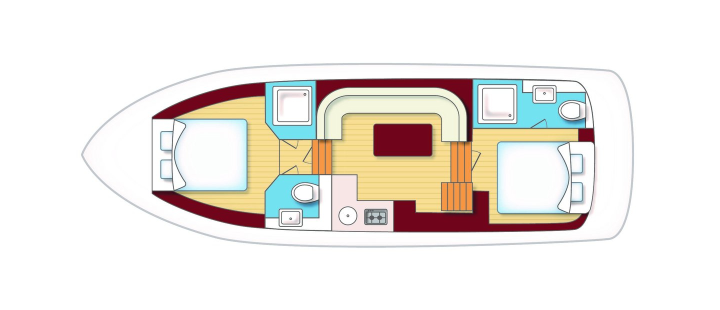Die Concordia 120 AC vereint klassische Eleganz mit durchdachter Funktionalität und bietet ein Höchstmaß an Komfort für anspruchsvolle Bootsferien. Mit ihrer großzügigen Sitzecke auf dem Achterdeck, verschließbarem Cabrio Verdeck und integrierter Badeplattform samt Grill lädt sie zum entspannten Verweilen ein. Der stilvoll eingerichtete Salon mit luxuriöser Pantry – ausgestattet mit Gasherd, Mikrowelle, Kühlschrank und Kaffeemaschine – sowie zwei elektrische Duschen und WCs sorgen für ein rundum komfortables Bord Leben. Warmwasser, Heizung, TV und Radio runden das exklusive Ausstattungspaket ab und machen die Concordia 120 AC zur perfekten Wahl für Genießer auf dem Wasser.