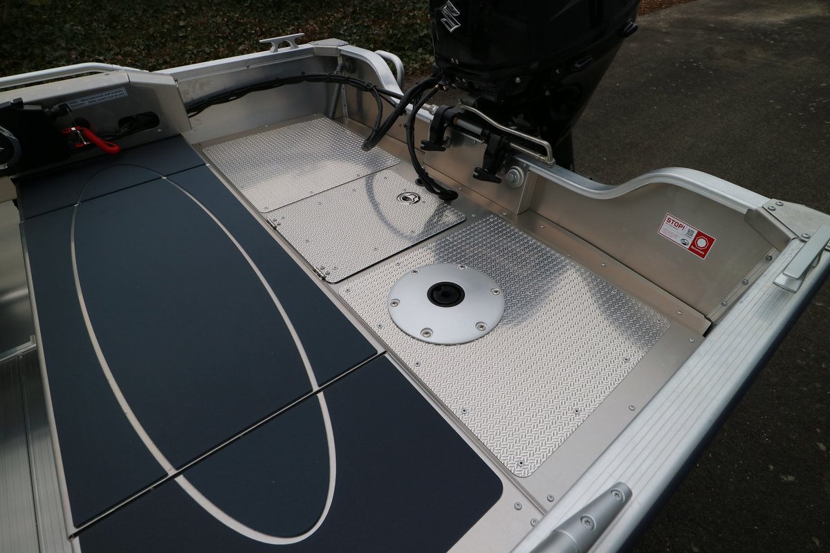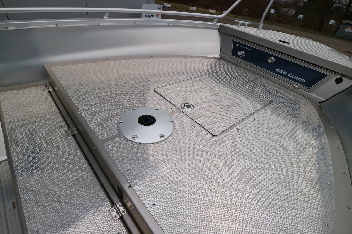 Teppich für Angeldeck Sportsman 445 Catch. Dieser ist 6 mm dick, UV-beständig und entwässernd.
