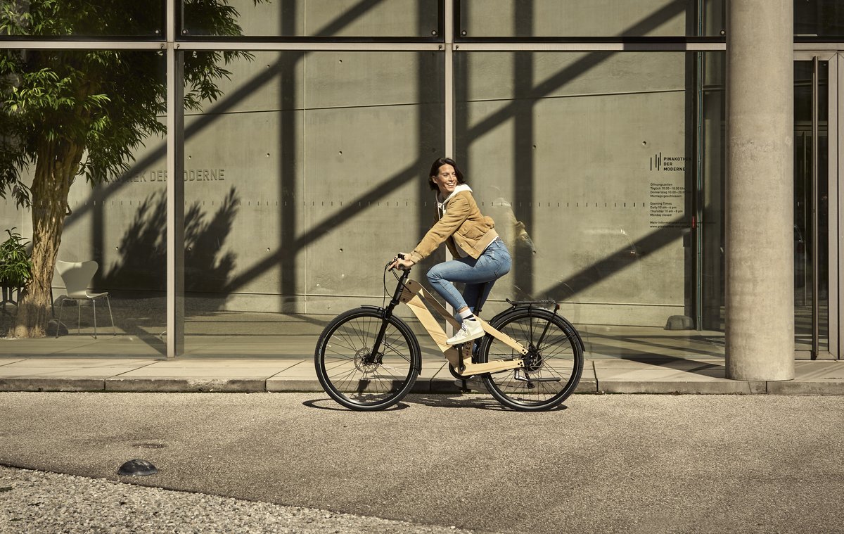E-Tour PRO Komfort: Leichtes, bequemes E-Bike mit unsichtbarem 540 Wh-Antrieb im Holzrahmen – ideal für Stadt und Land.