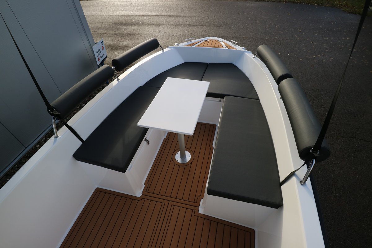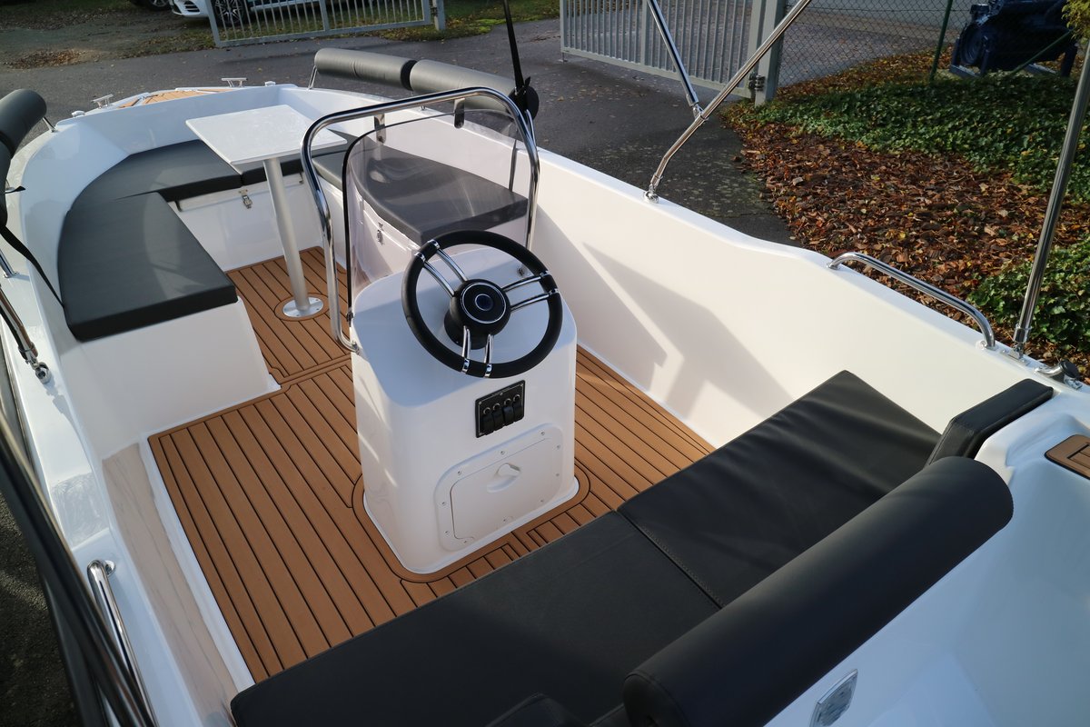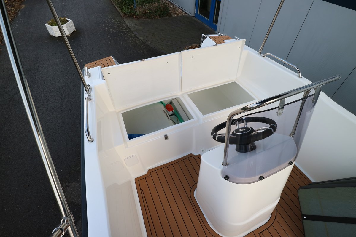 Auch an Deck überzeugt die Aquila 4.8 Family mit einem sicheren und übersichtlichen Steuerstand, ausreichend Platz zum Entspannen sowie praktischen Details, die den Aufenthalt an Bord besonders angenehm machen. Die stabile Bauweise und das ruhige Fahrverhalten garantieren ein sicheres und entspanntes Bootsgefühl – auch für Einsteiger.