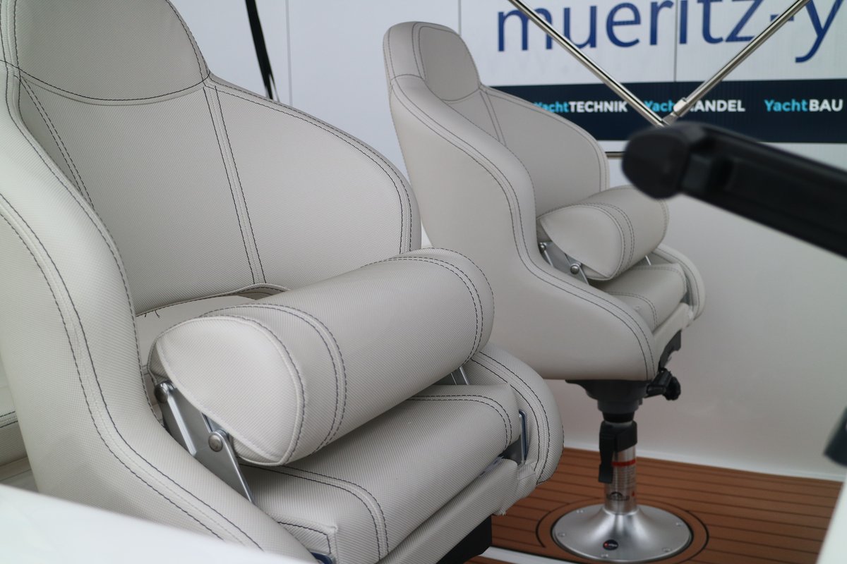 Die Aquila 5.3 Sundeck bietet trotz kompakter Größe Kabine, Sonnendeck und Ausstattung wie große Boote.