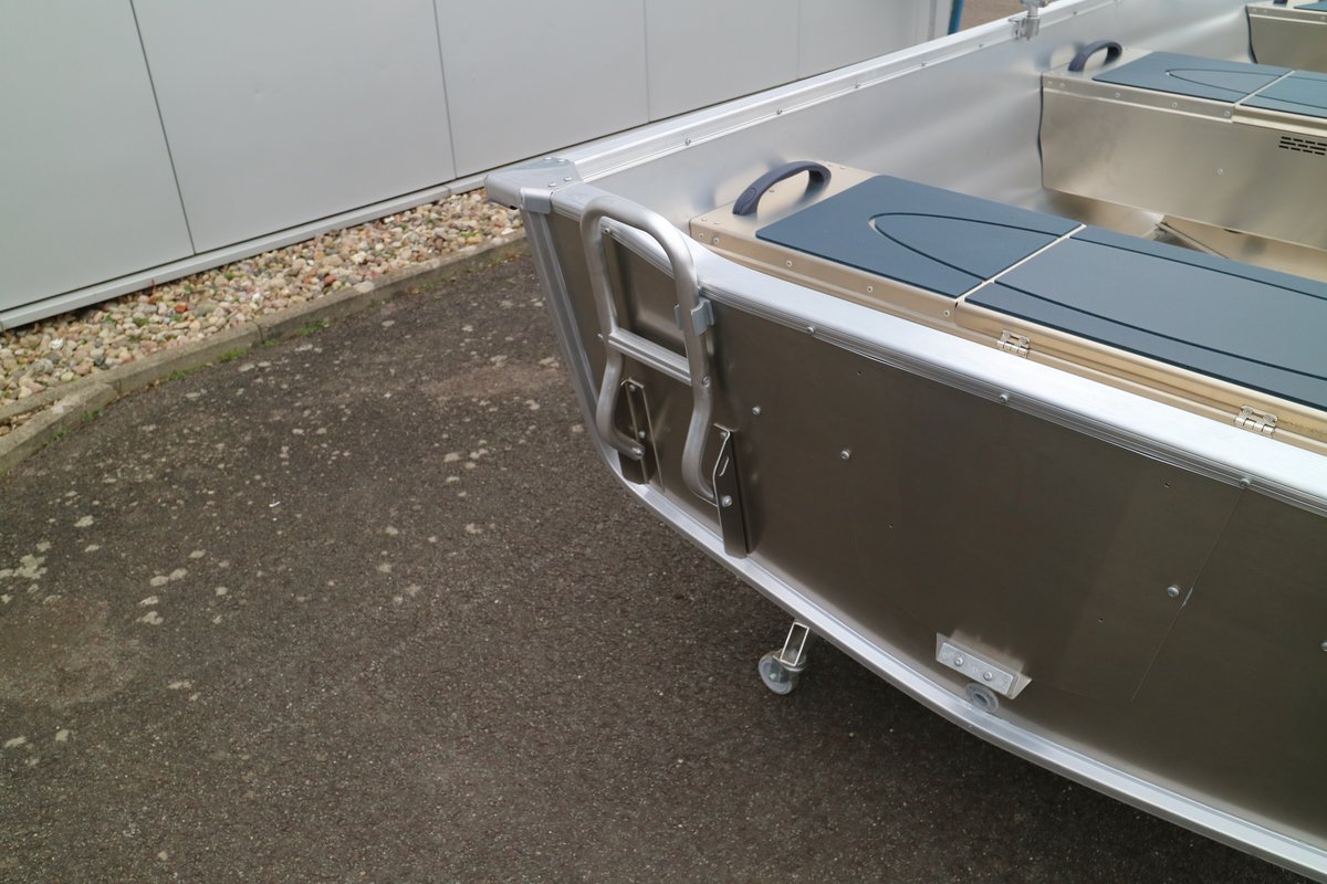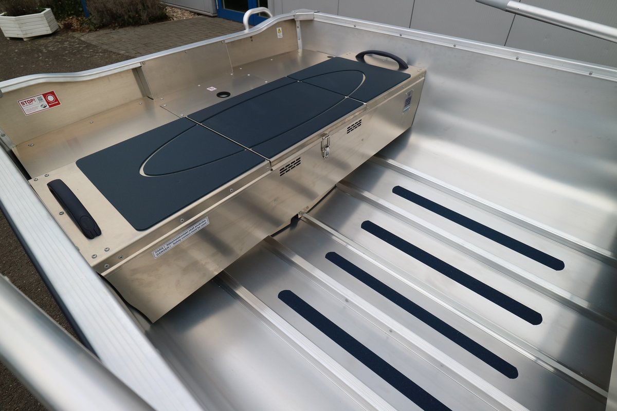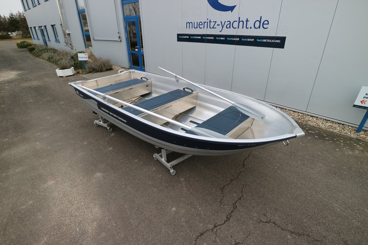Das Sportsman 400 ist ein aufgleitender Bootstyp für Suzuki Viertakt Außenbordmotoren bis 5 PS. Staufach in Achter- und Mittelbänken. Steuerstand (Zubehör) mit Platz für die Batterie. Möglichkeiten zum Schleppangeln und Wasserskilaufen (für leichte Personen). Das hochwertige, korrosionsbeständige Aluminium ist vom selben Typ, der auch im Flugzeugbau verwendet wird. Das Boot ist von Det Norske Veritas abgenommen und hat eine Securmark Diebstahlschutz Kennzeichnung. *Der Hersteller Linder empfiehlt bei der Kombination 400 Sportsman und Motoren größer als 10 PS einen Steuerstand zu verwenden. Steuerstand im Preis nicht enthalten.
