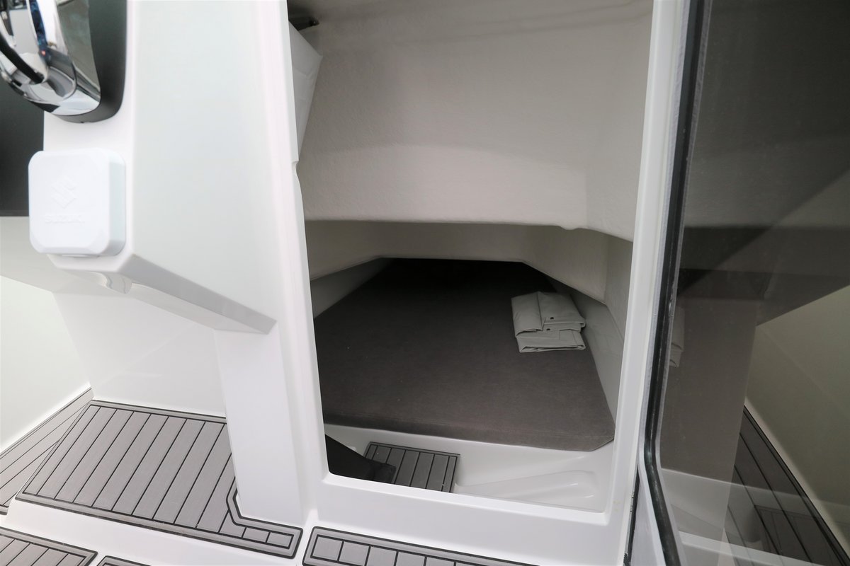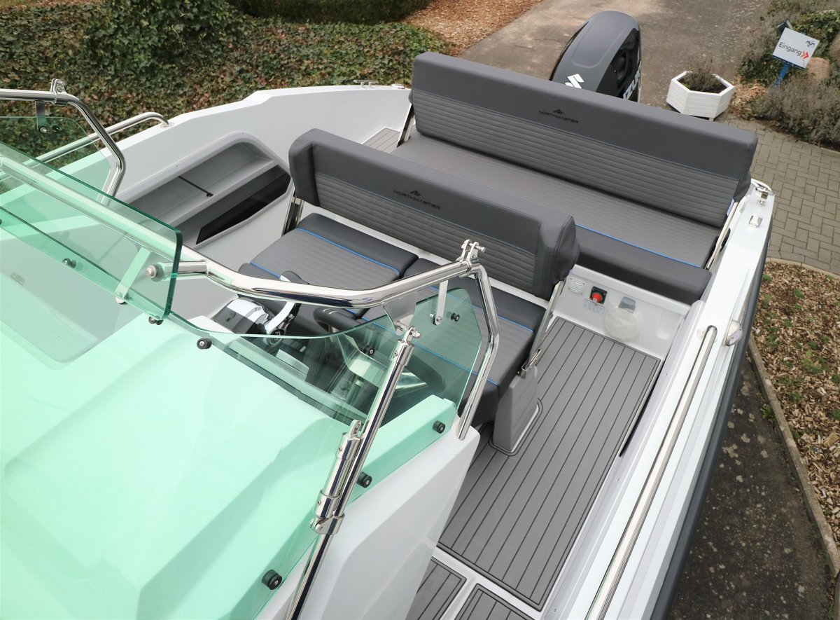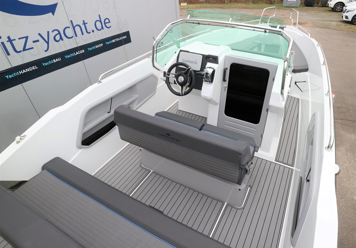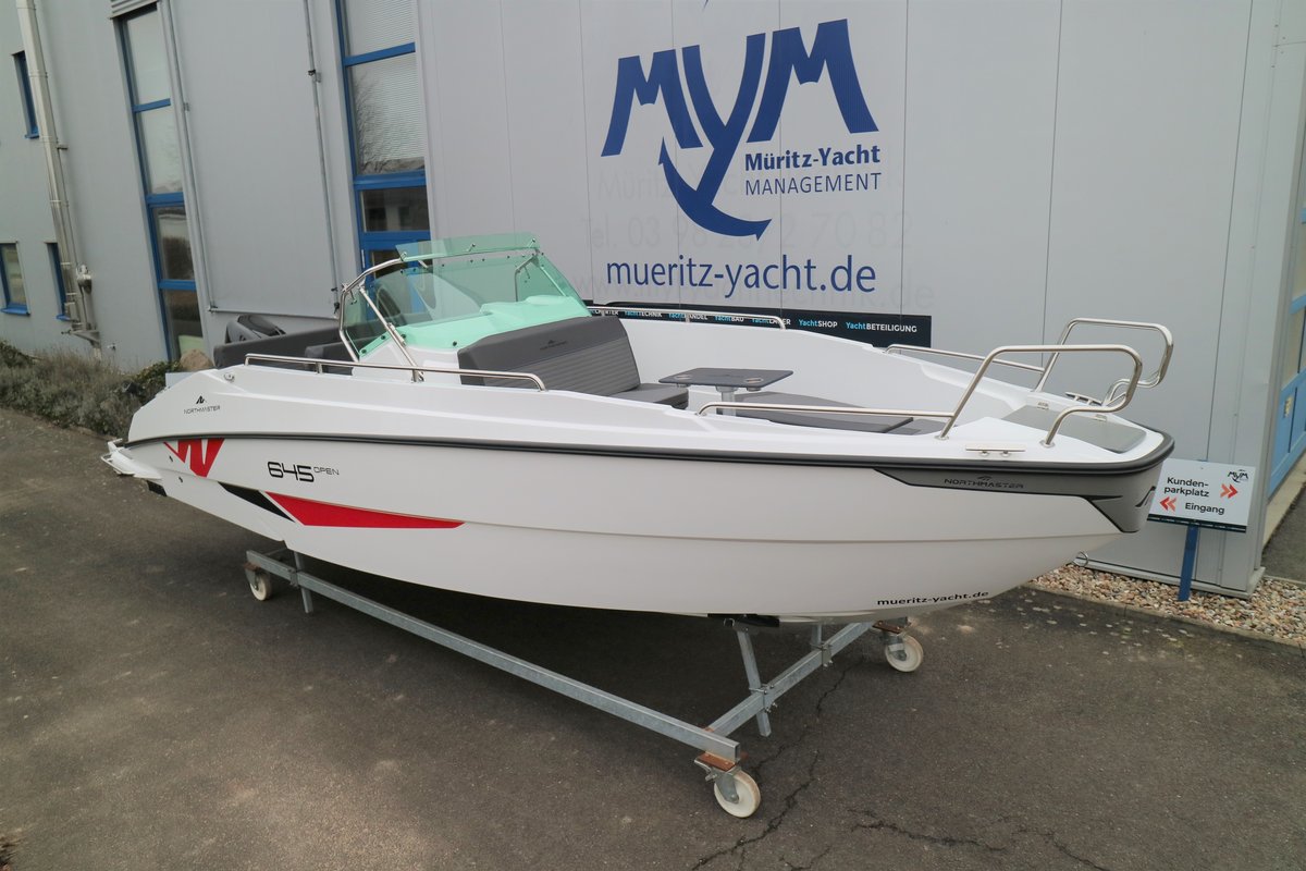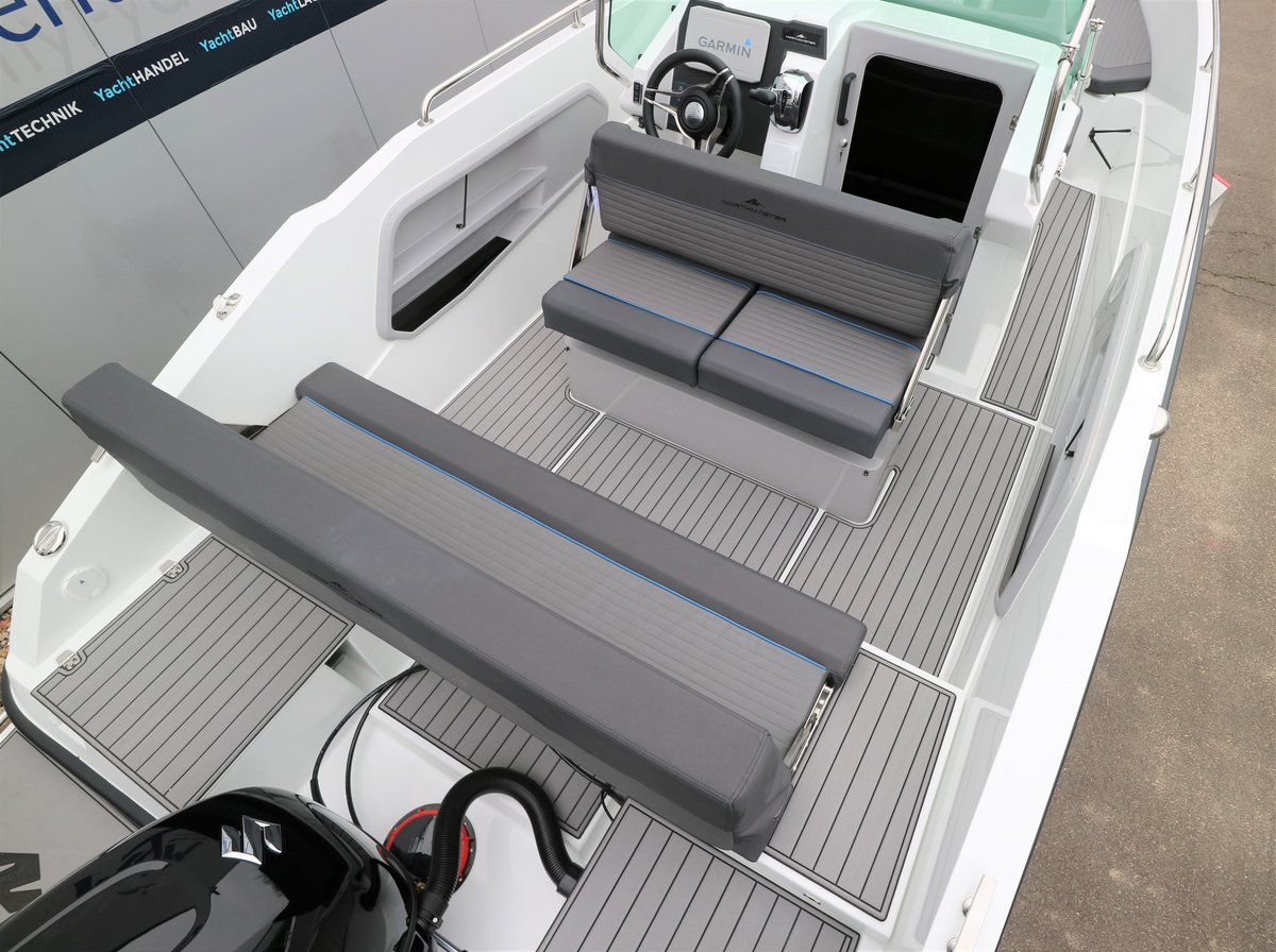 Die Northmaster 645 Open ist ein sportliches und vielseitiges Freizeitboot mit großzügigem Platzangebot und durchdachter Ausstattung – ideal für Tagesausflüge, Wassersport und entspannte Stunden auf dem Wasser. Mit einer Länge von 6,45 m und einer Breite von 2,43 m bietet das Boot Platz für bis zu 8 Personen. Die kleine Kabine mit Kojen, die umbaubare Bug-Sitzgruppe mit Cockpittisch und die komfortable Polsterung sorgen für Flexibilität und Komfort. Zur Ausstattung gehören u. a. ein hydraulisches Steuersystem, Navigationsbeleuchtung, Badeplattform mit Leiter, Edelstahlreling, Steuerkonsolen- und Sitzbank-Cover, Kartenplotter Garmin 92 UHD, Wassertank mit Dusche sowie ein Suzuki DF 140 BTGL Außenbordmotor inklusive Installationspaket. Optional ist ein Ohlmeier Trailer M 1800 erhältlich. Ein modernes Ausstellungsboot mit hochwertiger Ausstattung – sofort verfügbar bei Müritz-Yacht.