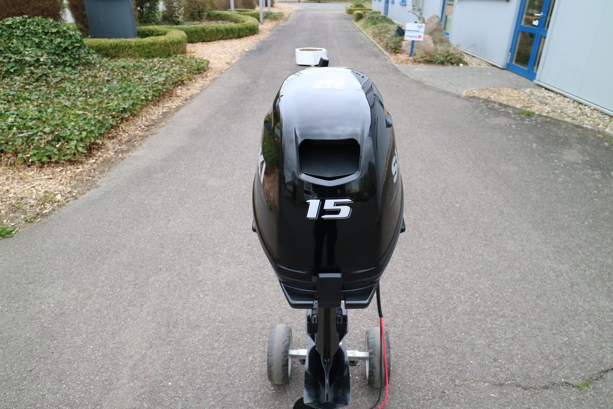 Ergonomie und Bedienungsfreundlichkeit sind für den DF 15 A ausschlaggebend, und er verfügt daher über ein schlankes, klares Aussehen ohne unhandliche Auswuchtungen, an denen sich Leinen oder Kleidung verfangen könnten. Die Steuerpinne und die Schaltung sind zentral gelegen, wobei der Not aus Knopf am Griff selbst angebracht ist. Der Startknopf und das LED-Display befinden sich auf dem Ruderpinnen-Stützbock. Eine Dekompressionseinrichtung erleichtert manuelle Starts.