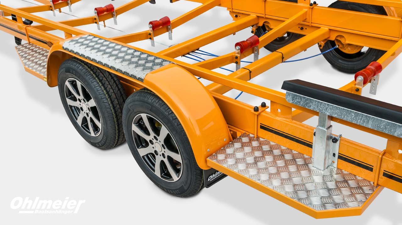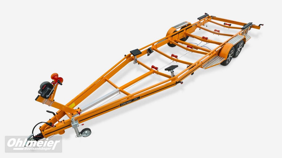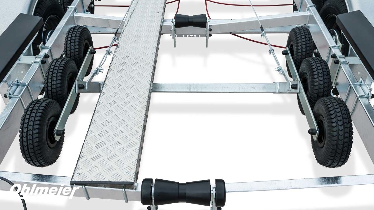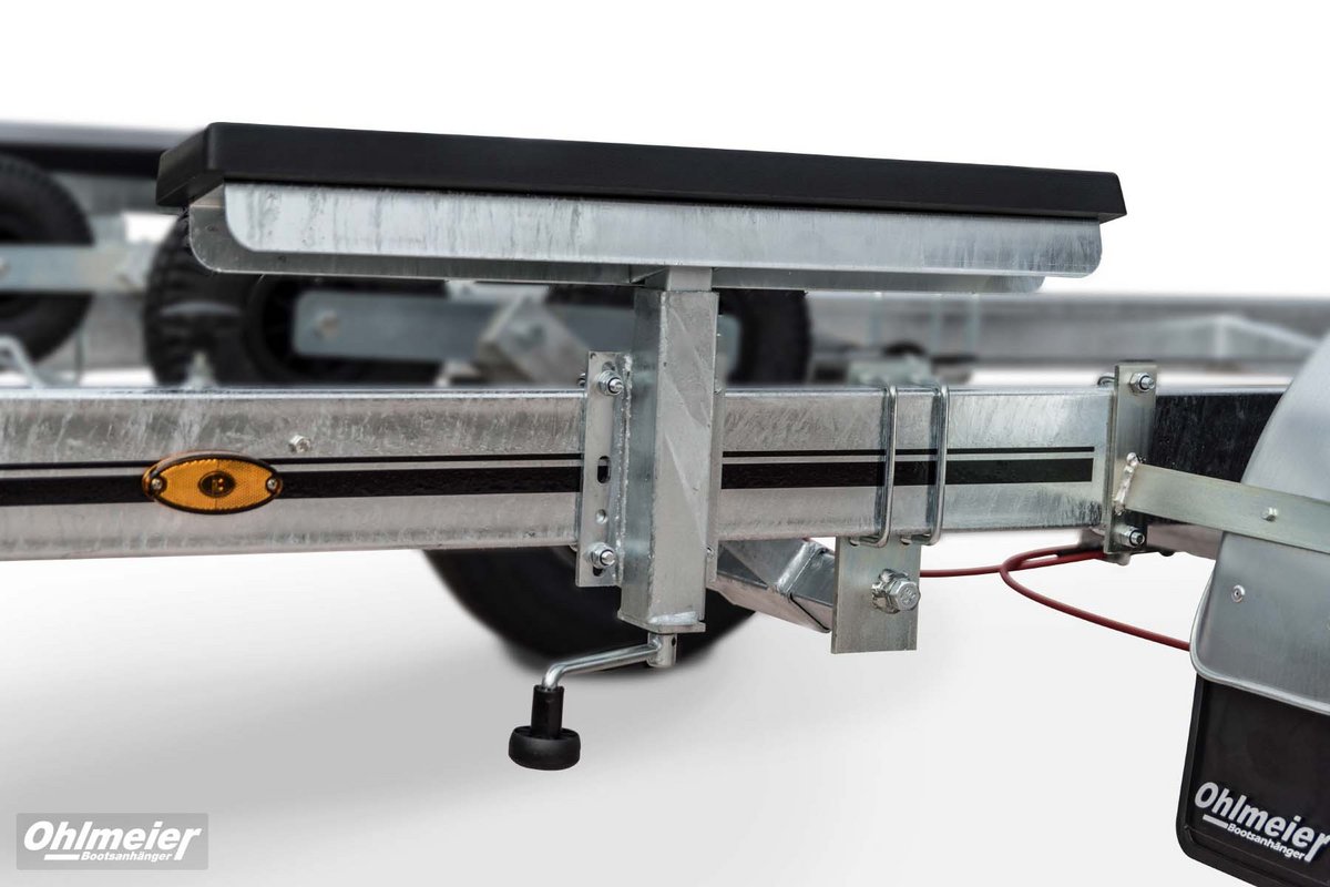 Der Hohlmeier MT 1700 überzeugt als zuverlässiger Motorboottrailer mit einer zulässigen Gesamtmasse von 1.700 kgund einer Nutzlast von ca. 1.310 kg. Sein maßgefertigter, verwindungssteif verschweißter Stahlrahmen sorgt für maximale Stabilität, während die Tauchbad-Feuerverzinkung innen und außen dauerhaften Korrosionsschutz bietet. Durch den tiefen Schwerpunkt mit V-Traversen und das verstellbare Breitspurfahrwerk mit Einzelradfederunggarantiert der MT 1700 ruhige Fahreigenschaften und hohe Spurtreue. Großdimensionierte Radbremsen mit Rückfahrautomatik, wasserdichte Schrägkugellager, Edelstahlbremsseile und 1a-Breitreifen stehen für Sicherheit und Langlebigkeit. Für den sicheren und schonenden Bootstransport sorgen höhenverstellbare Kielrollen und seitlich kippbare Langauflagen mit Spezial-Bootsauflagekissen. Der verstellbare Windenstand mit Sicherheits-Seilwinde, große Verzurrösen, ein stabiles Stützrad sowie die auszieh- und abnehmbare Beleuchtung machen den Trailer besonders praxisgerecht. Mit TÜV-geprüfter EG-Typgenehmigung, Trailerpass, Streifendekor in fünf Farben und 3 Jahren Garantie steht der Hohlmeier MT 1700 für Qualität, Präzision und Sicherheit – Made in Germany.