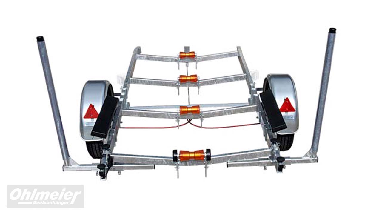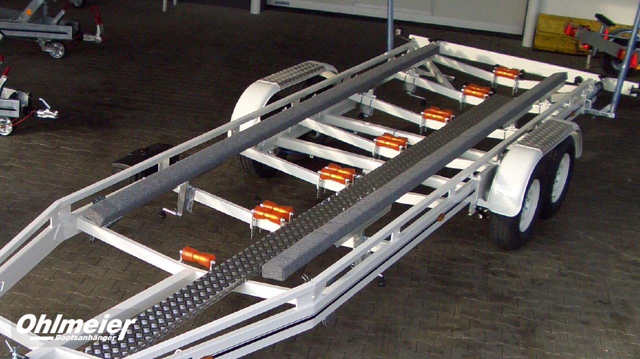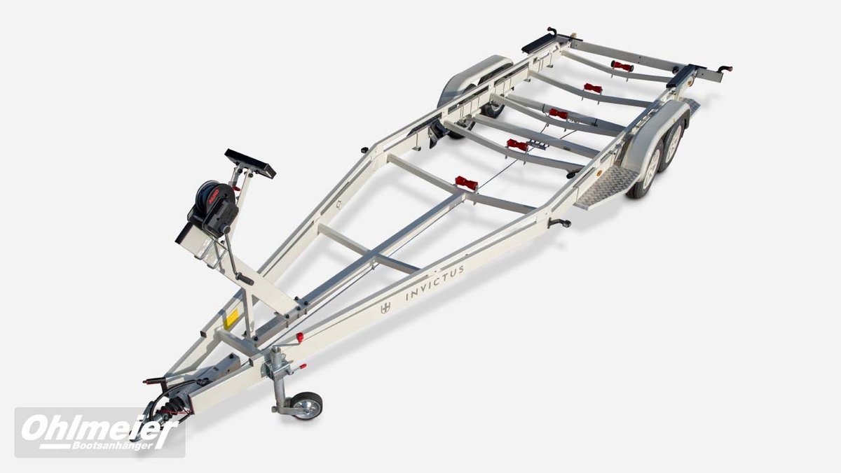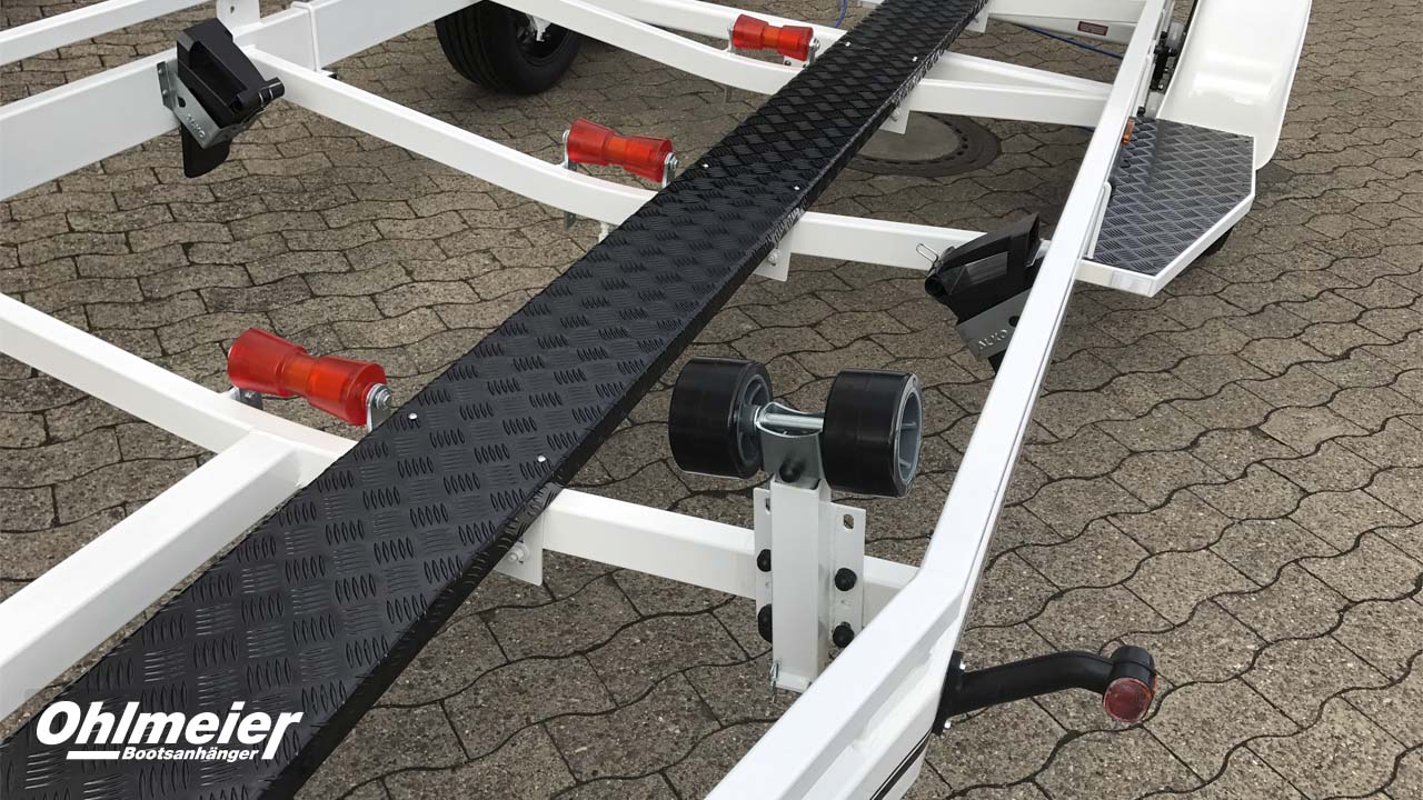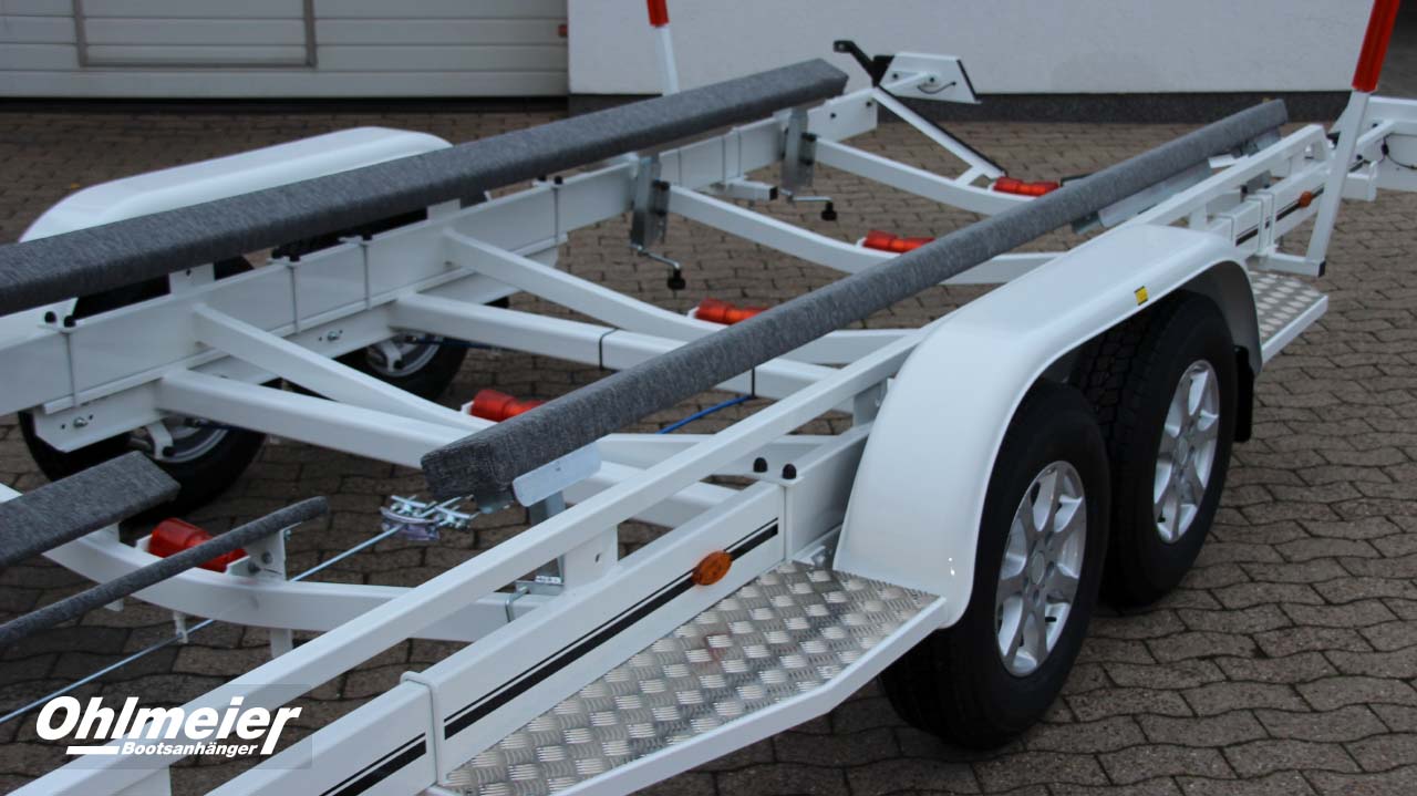 Der Hohlmeier MT 1700 überzeugt als zuverlässiger Motorboottrailer mit einer zulässigen Gesamtmasse von 1.700 kgund einer Nutzlast von ca. 1.310 kg. Sein maßgefertigter, verwindungssteif verschweißter Stahlrahmen sorgt für maximale Stabilität, während die Tauchbad-Feuerverzinkung innen und außen dauerhaften Korrosionsschutz bietet. Durch den tiefen Schwerpunkt mit V-Traversen und das verstellbare Breitspurfahrwerk mit Einzelradfederunggarantiert der MT 1700 ruhige Fahreigenschaften und hohe Spurtreue. Großdimensionierte Radbremsen mit Rückfahrautomatik, wasserdichte Schrägkugellager, Edelstahlbremsseile und 1a-Breitreifen stehen für Sicherheit und Langlebigkeit. Für den sicheren und schonenden Bootstransport sorgen höhenverstellbare Kielrollen und seitlich kippbare Langauflagen mit Spezial-Bootsauflagekissen. Der verstellbare Windenstand mit Sicherheits-Seilwinde, große Verzurrösen, ein stabiles Stützrad sowie die auszieh- und abnehmbare Beleuchtung machen den Trailer besonders praxisgerecht. Mit TÜV-geprüfter EG-Typgenehmigung, Trailerpass, Streifendekor in fünf Farben und 3 Jahren Garantie steht der Hohlmeier MT 1700 für Qualität, Präzision und Sicherheit – Made in Germany.